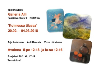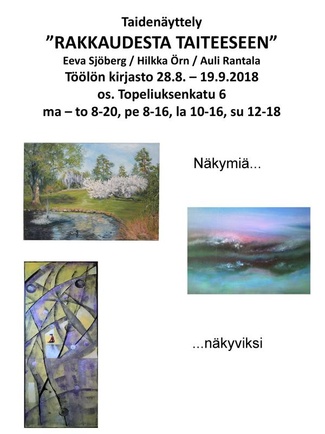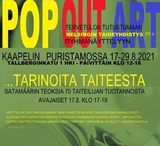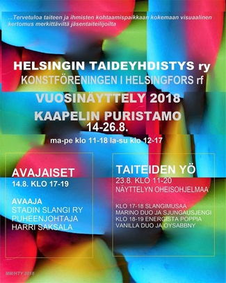 ![]() HTY ry:n vuosinäyttely 2024, jossa mukana yli 100 taiteilijaa ja n. 200 teosta. Olen mukana 3:lla malauksella. |