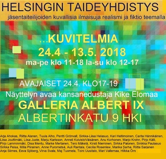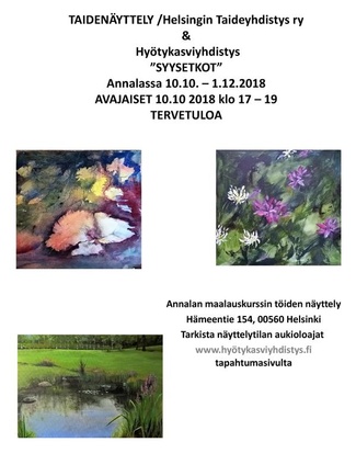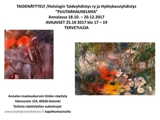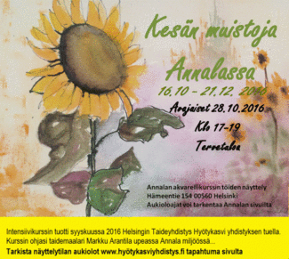 ![]() HTY ry:n vuosinäyttely 2024, jossa mukana yli 100 taiteilijaa ja n. 200 teosta. Olen mukana 3:lla malauksella. |